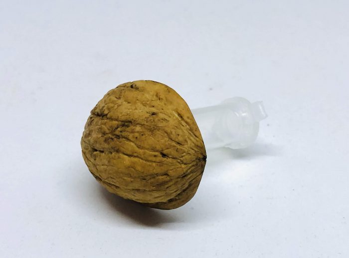Kamuflaż wraz z zamontowanym pojemnikiem typu “Eppendorf 2 ml”. Pojemnik to typowy mikrus, który mieści jedynie logbook.