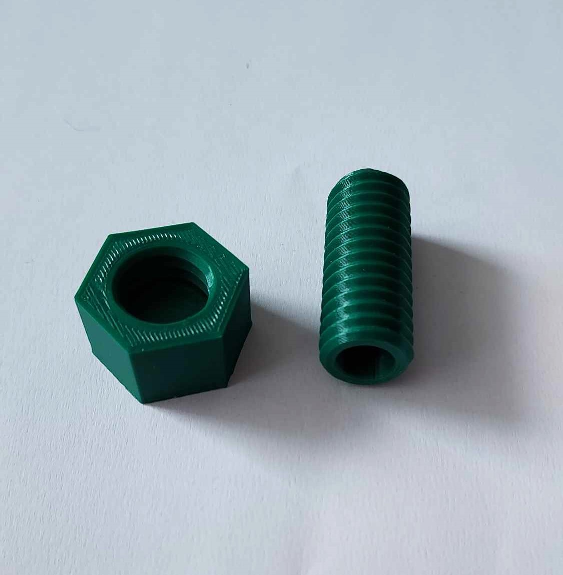Maskowanie 3D w kształcie śruby, wykonane z materiału PLA, który jest biodegradowalny i wytwarzany z surowców odnawialnych. Materiał wytrzymały na temperatury w zakresie od -30 °C do +45 °C.  Maskowanie najlepiej umieścić w zacienionym miejscu np. w mieście  itp.